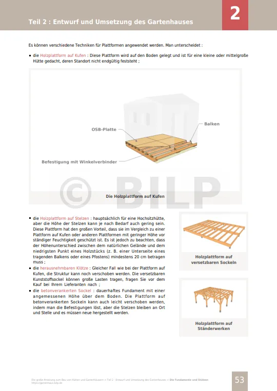 Konkrete Informationen für Ihr Projekt. Alle Geheimnisse, alle Tipps und Tricks, damit Ihre Hütte, Ihr Gartenhaus, Ihre Garage oder Ihr Anbau gelingt. Alle Techniken, alle Produkte werden Ihnen objektiv und unabhängig beschrieben. Detaillierte Ansichten beschreiben Ihnen alle Schritte des Baus.