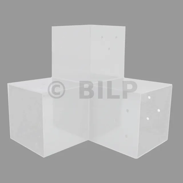 Es wird in einem Außenwinkel verwendet. Dieser Anschluss ermöglicht die Aufnahme einer großen 120x120mm-Steckdose, die senkrecht zu einer 120x120mm-Steckdose steht, die insgesamt von einem 120x120mm-Vertikaltopf unterstützt wird.