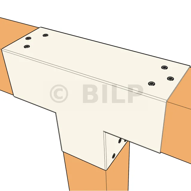 Es wird verwendet, um einen 90x90-mm-Träger senkrecht mit einem anderen 90x90-mm-Träger zu verbinden, OHNE dass er von einem vertikalen Pfosten getragen wird.