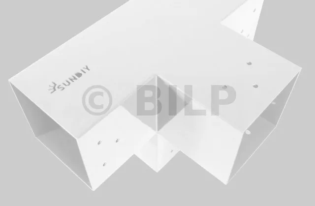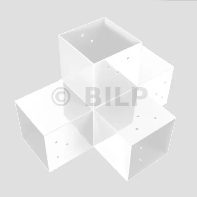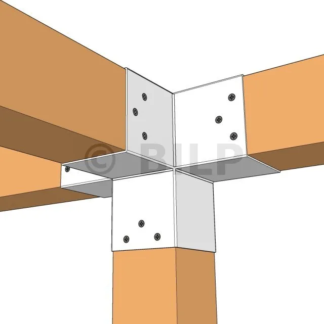 Damit können Sie einen 90 x 90 mm großen Balken senkrecht mit einem 90 x 90 mm großen Sparren verbinden, wobei das Ganze von einem 90 x 90 mm großen vertikalen Pfosten getragen wird.
