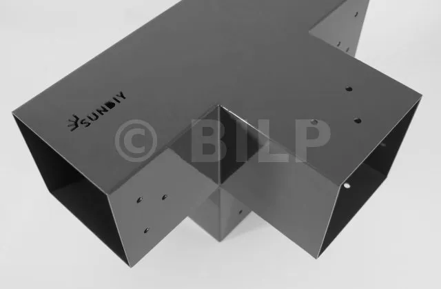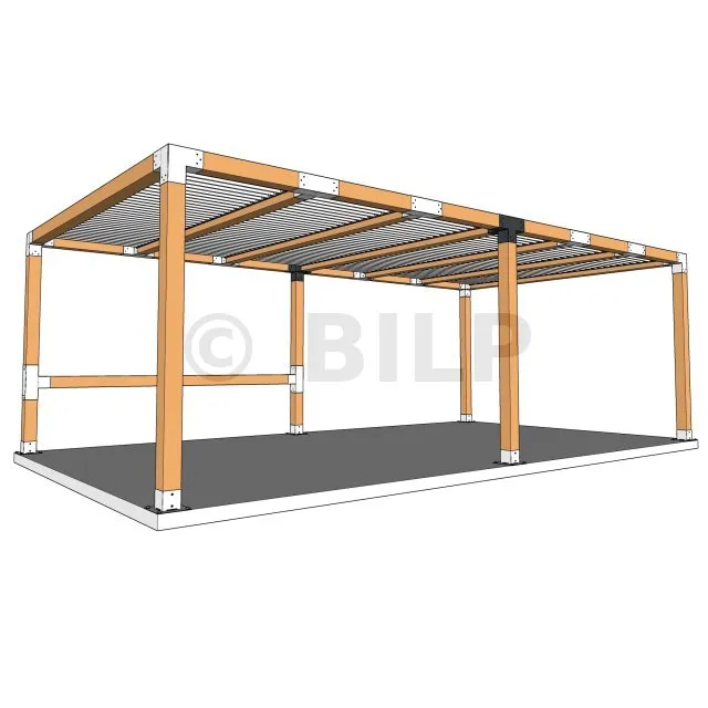Damit kann eine 120x120mm-Stütze senkrecht zu einem 120x120mm-Chevron angebracht werden, die insgesamt von einem 120x120mm-Vertikaltopf unterstützt wird.