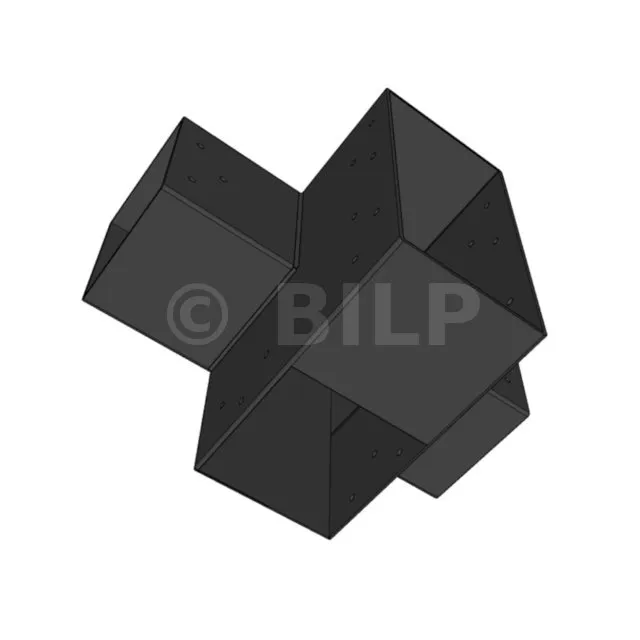 Es ermöglicht die senkrechte Verbindung von zwei 120 x 120 mm großen Balken zu einem großen 240 x 120 mm großen Balken, wobei das Ganze von einem 120 x 120 mm großen vertikalen Pfosten getragen wird.