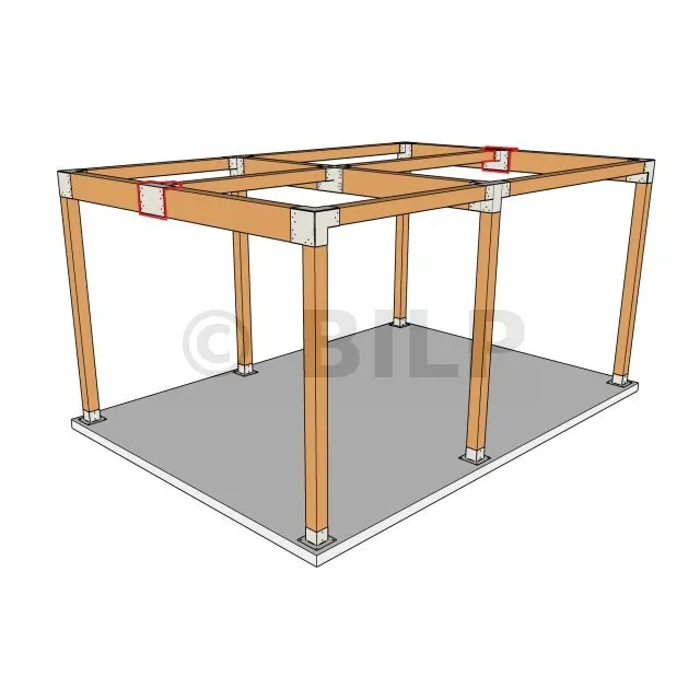 Es wird verwendet, um einen großen Balken von 240 x 120 mm senkrecht mit einem Balken von 120 x 120 mm zu verbinden, wobei das Ganze von einem vertikalen Pfosten von 120 x 120 mm getragen wird.