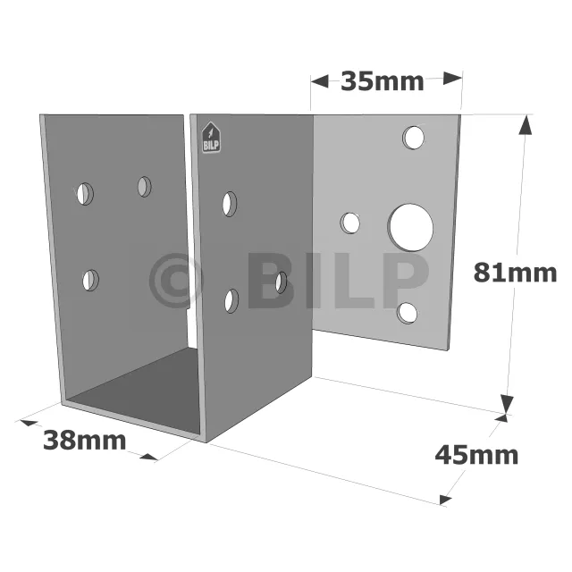 Balkenschuhe mit außenliegenden Schenkeln, MF-Sortiment, für MF-Mini-Pfettenanker - Réf. MF200/38/1.5