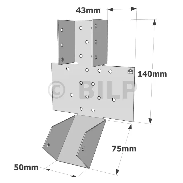 Der SPR-Balkenschuh mit einstellbarem Neigungswinkel ermöglicht die Befestigung von Sparren auf Holz- und Betonträger. Die Einstellung der Neigung wird auf der Baustelle für Neigungen bis zu 45° nach unten oder oben vorgenommen. Diese Einstellung muss nur einmal in die Richtung der gewünschten Neigung vorgenommen werden.