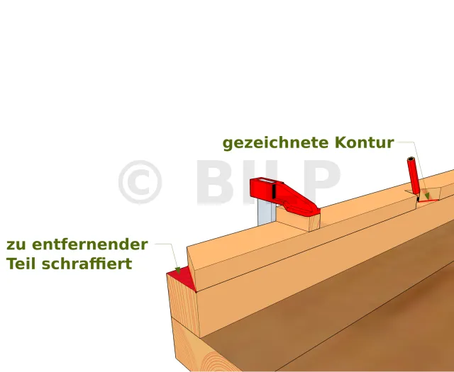 Zeichnen Sie den Umriss des Musters auf dem leeren Sparren mit einem Bleistift nach und kreuzen Sie die zu entfernenden Teile an.