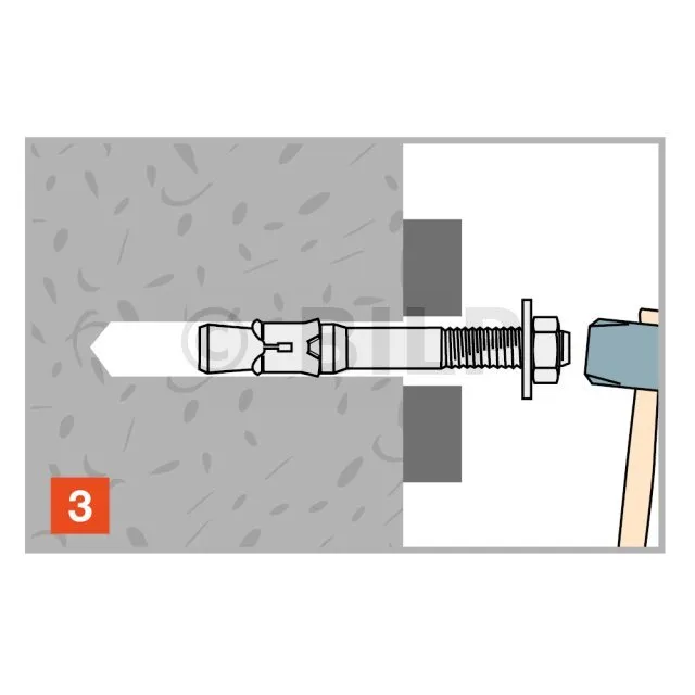 - Montage durch das zu befestigende Element, Bohr-Ø = Dübel-Ø,