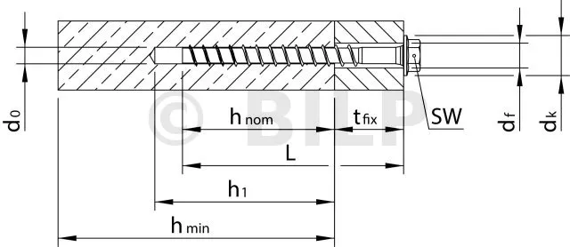 - Maximale Dicke der zu befestigenden Teile (tfix)5/15mm