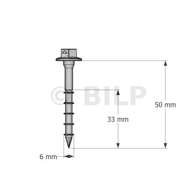 - Sechskantkopf : perfekter Halt der Stahlplatte auf Holz dank seines breiten Kopfes,