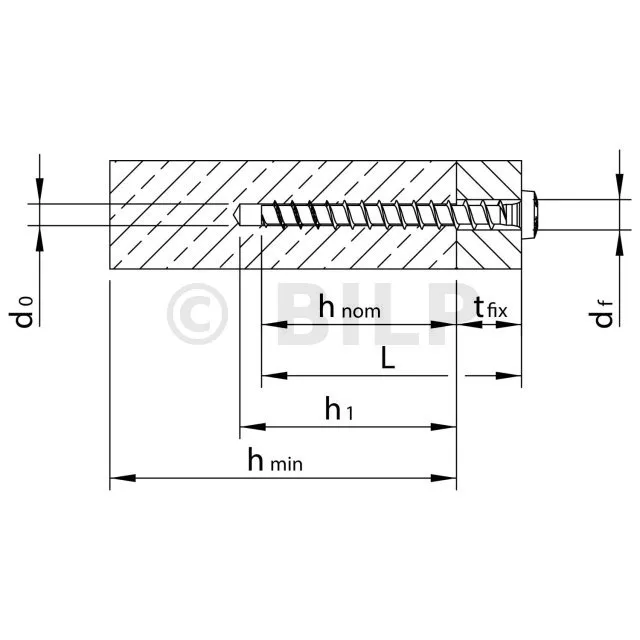 - Prof. d’ancrage nominal, hnom standard30mm