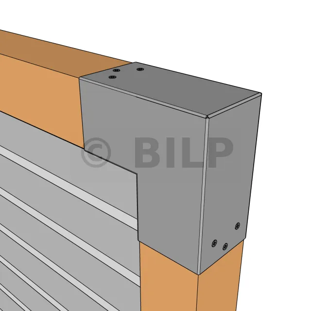 Es wird in einer Außenecke verwendet. Mit diesem Verbinder können Sie einen 90 x 90 mm großen Balken senkrecht mit einem anderen Balken oder mit einem 90 x 90 mm großen vertikalen Pfosten verbinden.