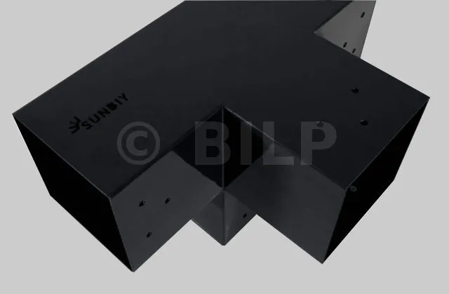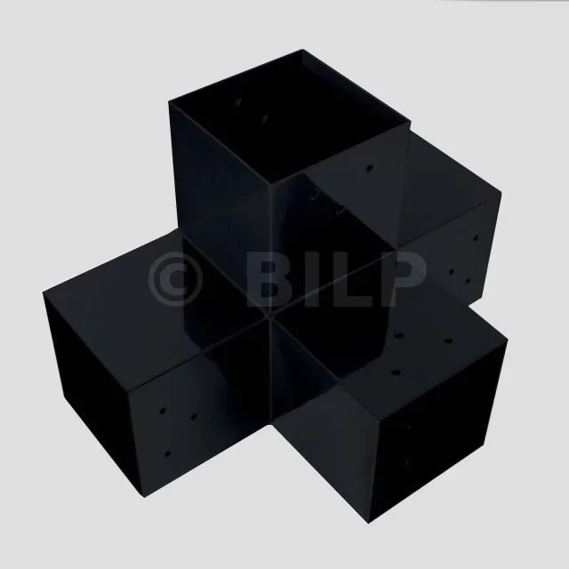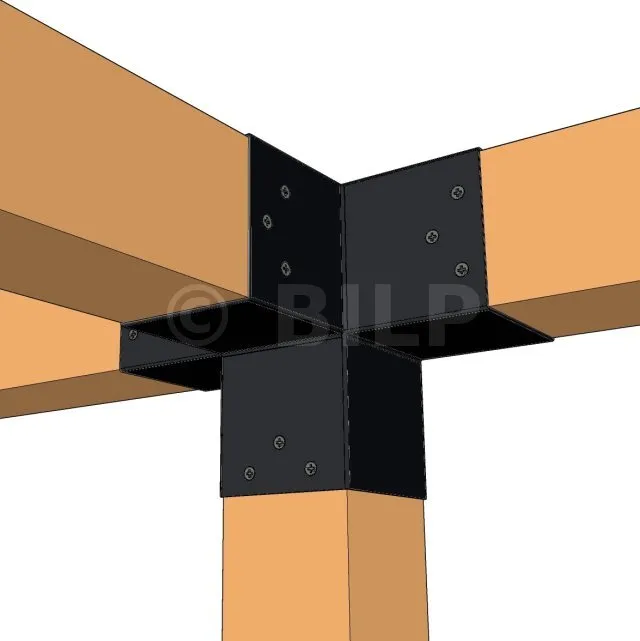 Damit können Sie einen 90 x 90 mm großen Balken senkrecht mit einem 90 x 90 mm großen Sparren verbinden, wobei das Ganze von einem 90 x 90 mm großen vertikalen Pfosten getragen wird.