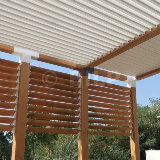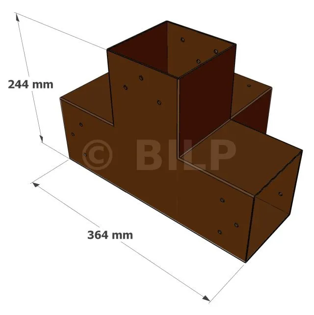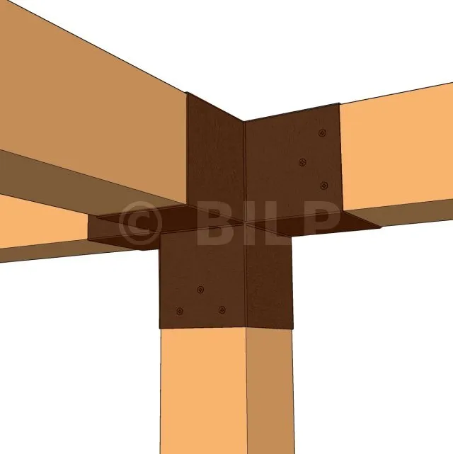 Damit kann eine 120x120mm-Stütze senkrecht zu einem 120x120mm-Chevron angebracht werden, die insgesamt von einem 120x120mm-Vertikaltopf unterstützt wird.