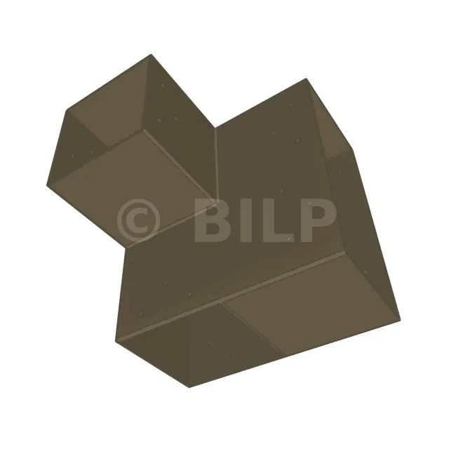 Es wird in einer Außenecke verwendet. Mit diesem Verbinder können Sie einen großen Balken von 240 x 120 mm senkrecht mit einem Balken von 120 x 120 mm verbinden, wobei das Ganze von einem vertikalen Pfosten von 120 x 120 mm getragen wird.