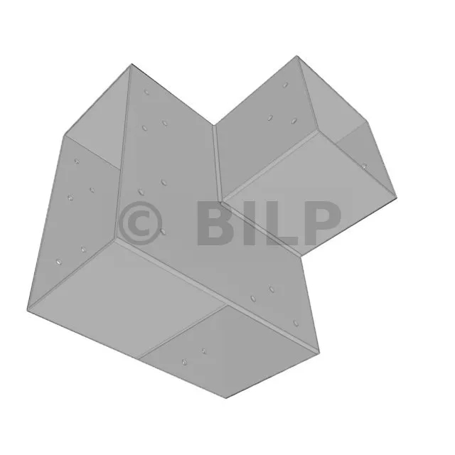 Es wird in einer Außenecke verwendet. Mit diesem Verbinder können Sie einen großen Balken von 240 x 120 mm senkrecht mit einem Balken von 120 x 120 mm verbinden, wobei das Ganze von einem vertikalen Pfosten von 120 x 120 mm getragen wird.