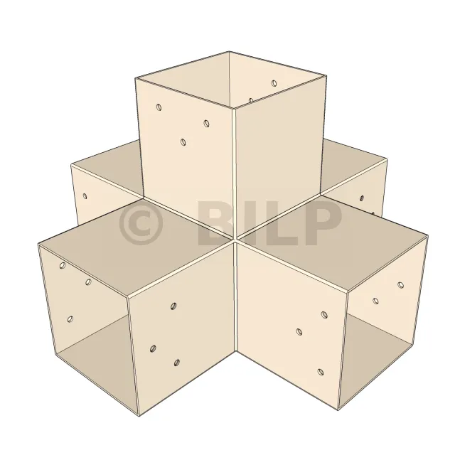 Es ist möglich, zwei 120 x 120 mm große Aussparungen senkrecht zu einer anderen 120 x 120 mm großen Aussparung aufzustellen, die insgesamt von einem 120 x 120 mm großen vertikalen Ausgießer unterstützt wird.