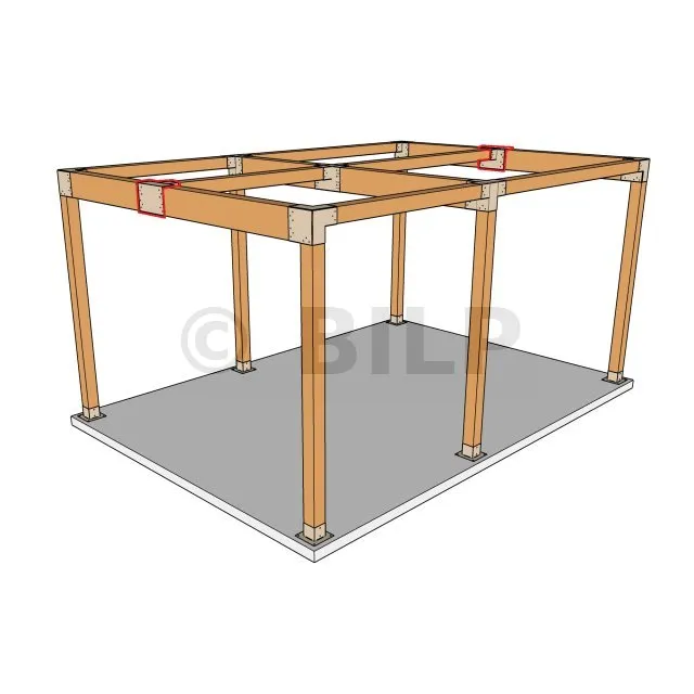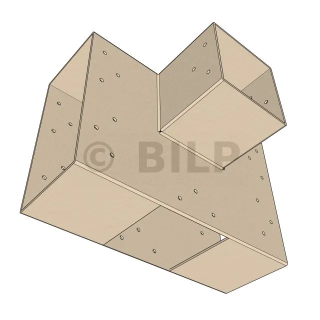 Es wird verwendet, um einen großen Balken von 240 x 120 mm senkrecht mit einem Balken von 120 x 120 mm zu verbinden, wobei das Ganze von einem vertikalen Pfosten von 120 x 120 mm getragen wird.