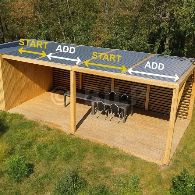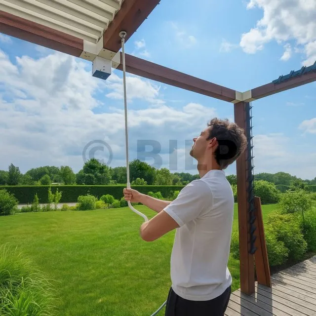 Der Blade Runner ist der ultimative Antriebsmechanismus für die Bedienung der verstellbaren SUNDIY-Lamellen 20 mm und 27 mm, aus Aluminium oder Holz – ausschließlich für horizontale Anwendungen (bioklimatische Pergolen).