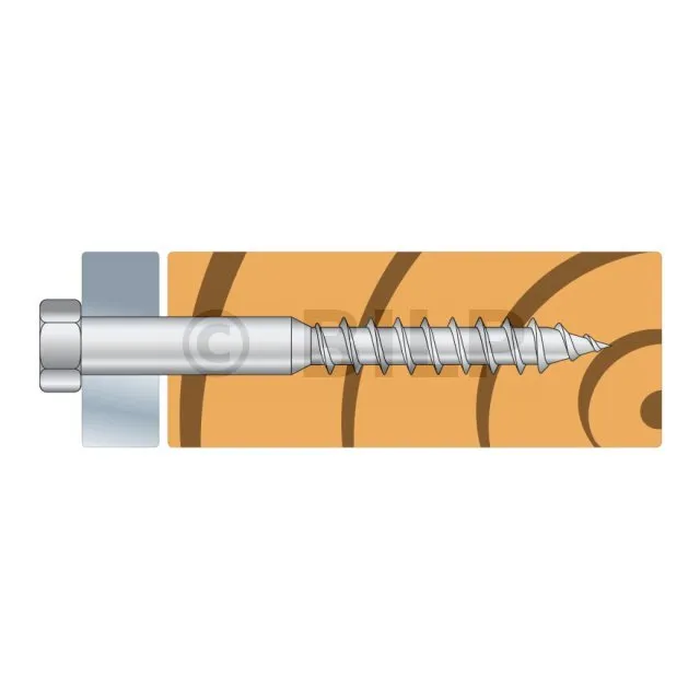 LAG-Zugschrauben ermöglichen die Befestigung von Metallplatten an Holzelementen. Sie werden im Allgemeinen zur Befestigung von Pfosten an Pfostenfüßen, Konsolen an Traversen usw. verwendet.