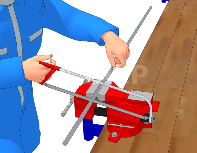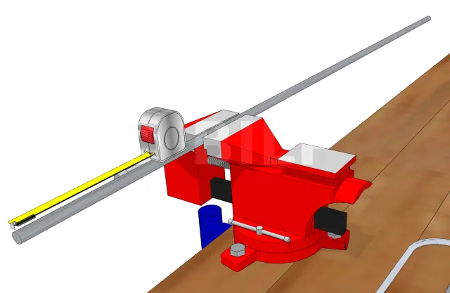 Die Länge der zu schneidenden Stange = Breite der Pfette (2 Mal im Falle einer verzangten Pfette und 1 Mal bei einer einfachen Pfette) + Breite des Pfostens + Dicke der 2 Muttern + Dicke der 2 Unterlegscheiben.