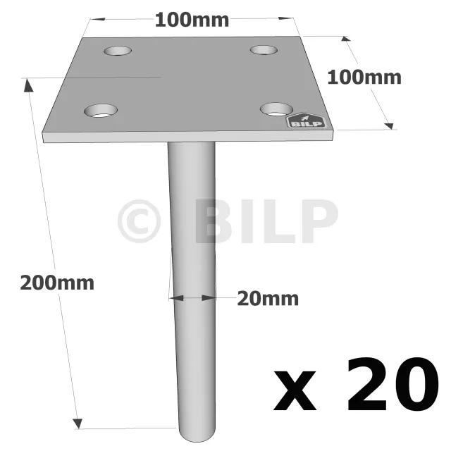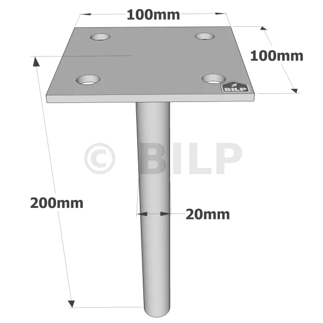Pfostenträger zum Einbetonieren mit einzelner Platte - Réf. PPSP100_20