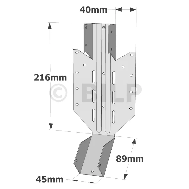 - Langlöcher, die bei Bedarf ein schräges Nageln ermöglichen.