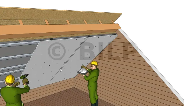 texte=20,0cm|points=667,215,797,233Verlegen der zweiten DämmschichtFür diesen Schritt müssen Sie die zweite Mineralwolle installieren, indem Sie sie in die Hänger einstecken. Zum Festhalten werden Sie die Unterlegscheibe auf die Hänger aufklipsen.