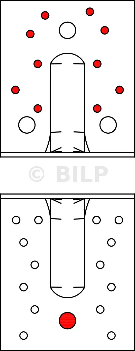 - HOLZ/HOLZ-Befestigung - TeilvernagelungAile A : 4 ; Aile B : 4 ; type : Pointes annelées CNA Ø4.0x35 ou Ø4.0x40 ou Ø4.0x50 ou Ø4.0x60 mm, Vis CSA Ø5.0x35 ou CSA Ø5.0x40