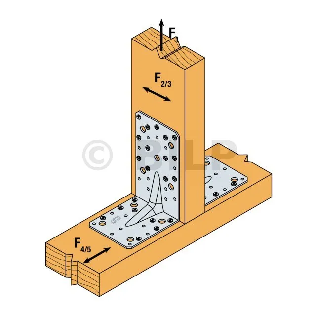 - HOLZ/HOLZ-Befestigung - Totalvernagelung2 équerres ; Aile A : 12CNA Ø4.0x35 ou Ø4.0x50 mm ; Aile B : 8CNA Ø4.0x35 ou Ø4.0x50 mm