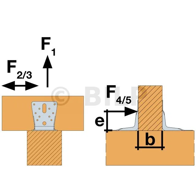 - HOLZ/HOLZ-Befestigung - TotalvernagelungAile A : 10 ; Aile B : 14 ; type : Pointes annelées CNA Ø4.0x35 ou Ø4.0x50 mm, Vis CSA Ø5.0x35 ou CSA Ø5.0x40