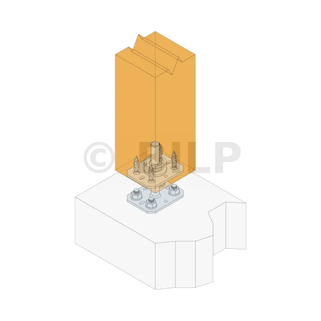 - Holzverbindung auf starrem TrägerAuf Pfosten : 4Ø10 (Bolzen oder Zuganker LAG 8x50); auf Beton : 4Ø10 (WA-Stabdübel M8-68/5; Gewindestange LMAS M8-95/20).