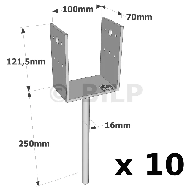U-Pfostenträger zum Einbetonieren - Réf. PPD100/70G_10
