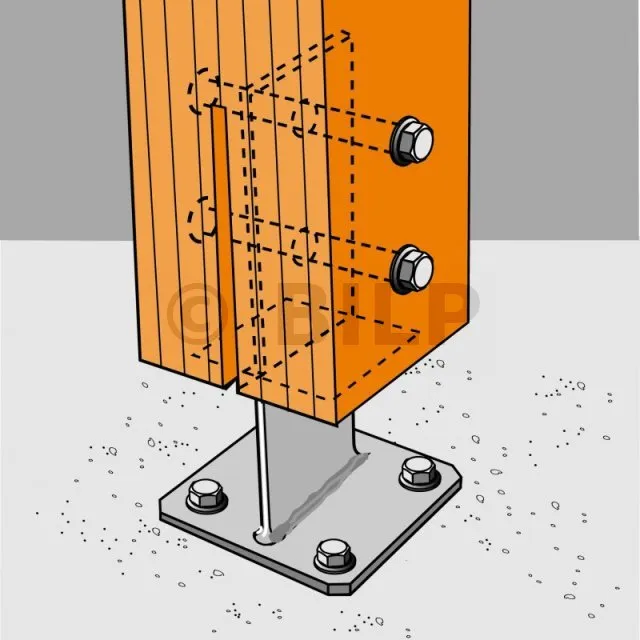 - Holzverbindung auf starrem TrägerSur poteau : 2 STD12 ; sur béton : 4Ø10 (goujons WA M10 ; tige filetée M10) ; sur acier : boulons