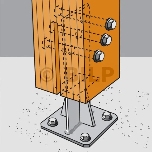 - Holzverbindung auf starrem TrägerAuf Pfosten : 2 STD12; auf Beton : 4Ø12 ( Bolzen WA M12 ; Gewindestange M12); auf Stahl : Bolzen