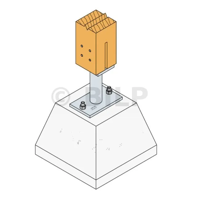 - Holzverbindung auf starrem TrägerAuf Pfosten : 4Ø8 (STD-Stabdübel) ; auf Beton : 2Ø12 (WA-Dübel ; Gewindestange)