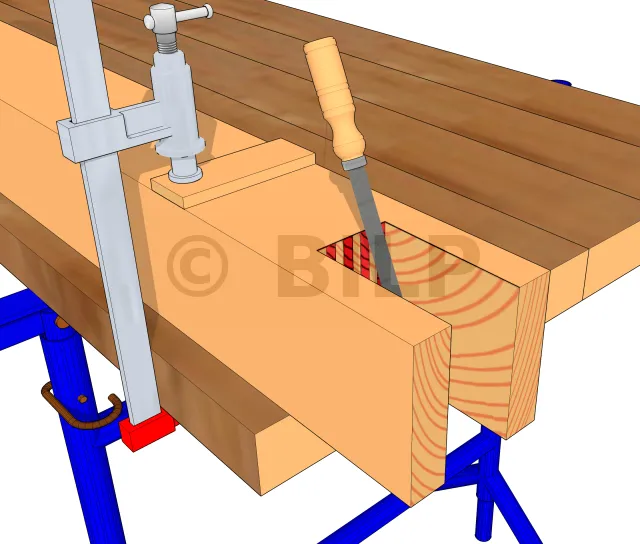 Um die Kerbe perfekt zu bearbeiten, muss eine Feile so durch die Kerbe geführt werden, dass ihre gesamte Oberfläche glatt ist und somit das zu befestigende Element der Form dieser Kerbe folgen kann.