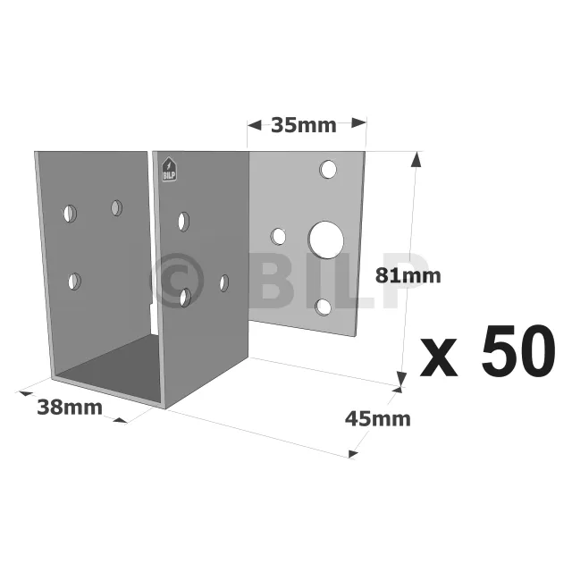 Balkenschuhe mit außenliegenden Schenkeln, MF-Sortiment, für MF-Mini-Pfettenanker - Réf. MF200/38/1.5_50