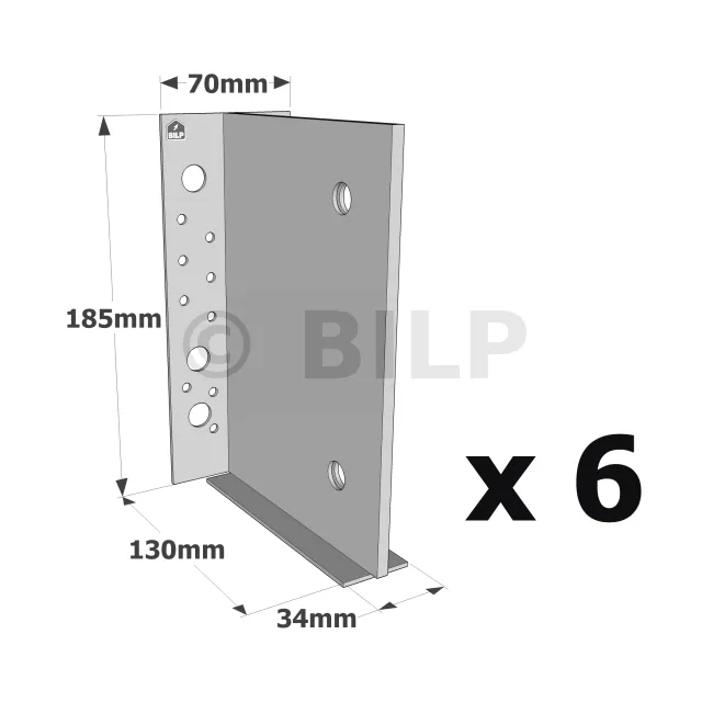 | Breite | Höhe | Pfostenbreite | Höhe | Tiefe | Breite (C) | Breite (D) | Dicke (t1) | Dicke (t2) | Ø13 | Ø5 | Ø13 | ||