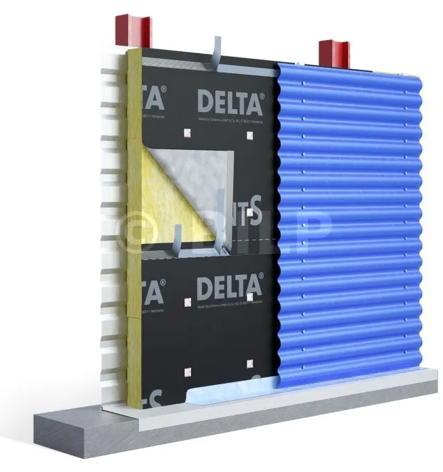 Ausführung ohne selbstklebende Kanten : DELTA®-VENT S. Dämmung im Kontakt mit dem durchgehenden Untergrund : auf der Innenseite, Dampfsperre von Wert
