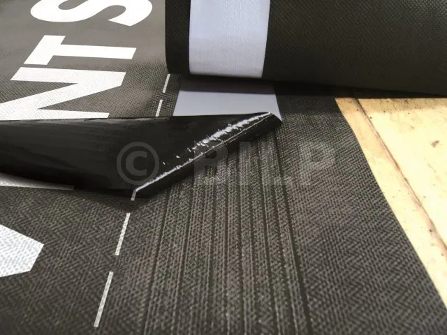 - MaterialPP-Lagen-Dachunterspannbahn, bestehend aus zwei desorientierten Endlos-Monofilament-Vliesstoffen und einer atmungsaktiven Folie.