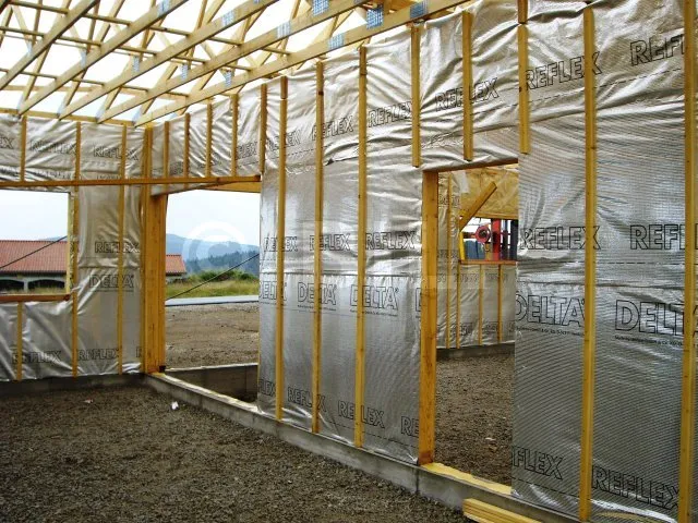 Verstärkte Dampfsperre mit metallisierter Oberfläche. Für Luftdichtheit in gedämmten Konstruktionen (Wände, Dächer, Böden). Luft- und wasserdampfdicht. Reflektierende Oberfläche für mehr Komfort im Winter. Schutz vor elektromagnetischer Strahlung (> 30 dB).