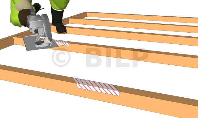 Der Unterschied besteht hier darin, dass die Nuten diagonal verlaufen. Die Tiefe der Nut ist gleich der Dicke des Verbands.