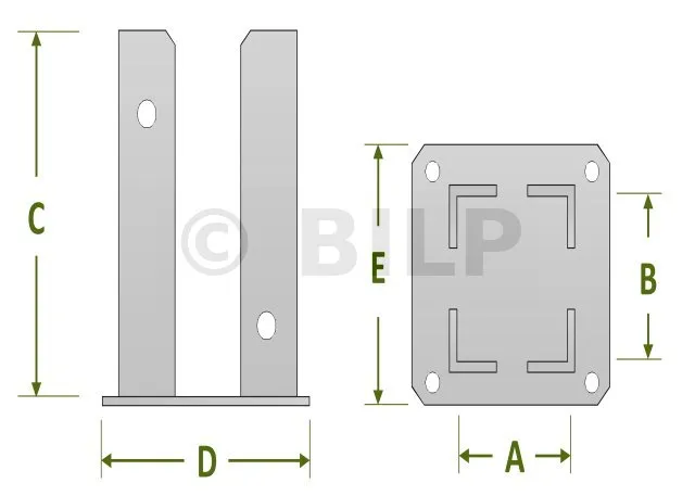 - Bohrungen der Lasche BSchrauben oder Nägel : 12 Ø5 ; Bolzen : 3 Ø13