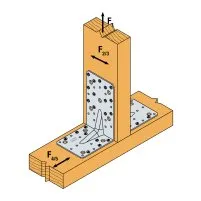 - Wenn die gesamte Struktur die Drehung der Pfette oder des Pfostens verhindert, beträgt die Zugfestigkeit die Hälfte des für zwei Konsolen angegebenen Wertes.