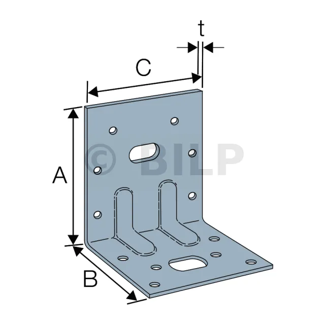 - Holz-/Holzbefestigung - Pfosten-/TrägertypAile B : 12 ; Aile C : 4 ; type : CNA Ø4.0x35 ou Ø4.0x50 mm - Assemblage avec 2 équerres