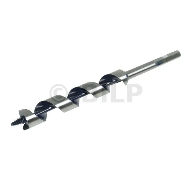 Gehärteter und präzisionsgeschliffener Schneckenbohrer aus Kohlenstoffstahl mit Sechskantschaft. Die Zentrierspitze mit Gewinde zieht sich in das Holz hinein, und ein einzigartiger Fräser leitet das Eindringen der Schneide in das Holz ein, was ein genaueres Bohren ermöglicht.