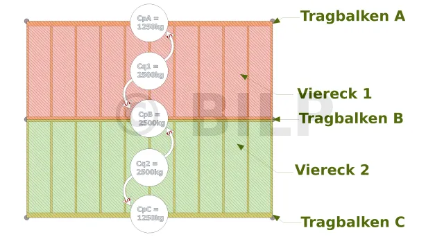unter Berücksichtigung der gewünschten Abmessungen der Plattform. Verteilen Sie die Balken entsprechend dem Achsabstand E. Zeichnen Sie an den Enden der Balken die Tragbalken ein. Der Abstand zwischen den Tragbalken entspricht der Spannweite Ps.