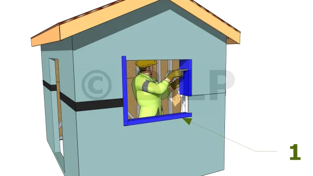Bringen Sie dann eine Gummidichtung auf dem Teerpapier oder der Verkleidung an, wo die Fensterrahmen an die Verkleidung genagelt werden. Dies wird dazu beitragen, eine mögliche Infiltration zu reduzieren. Und tragen Sie eine Silikonschicht um die Außenkanten auf, um die Öffnung abzudichten.