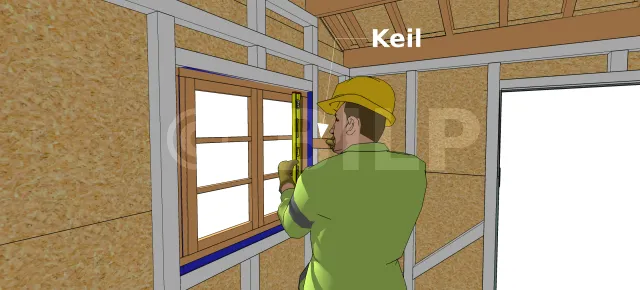 Wenn das einzubauende Fenster waagerecht ist, justieren Sie die seitlichen Pfosten mit Keilen, bis der Fensterflügel vollkommen rechtwinklig ist. Sie können dies überprüfen, indem Sie entweder ein Zimmermannswinkel innerhalb der Pfosten verwenden oder indem Sie die Diagonalen der Fensteröffnung überprüfen, um sicherzustellen, dass sie die gleiche Länge haben.