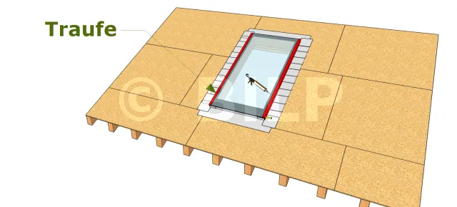 Verwenden Sie für die Ecken Eckstücke, die für die Außenabdichtung geeignet sind. Verstemmen Sie den Rand der Öffnung an der Verbindungsstelle zwischen dem Wechsel und den Hilfssparren.